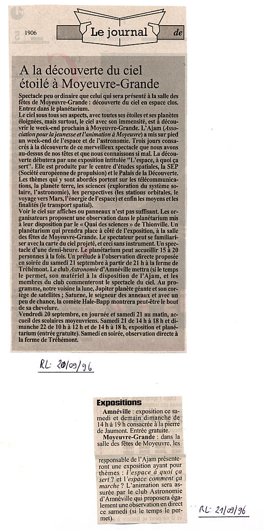 Vendredi 20 et Samedi 21 Septembre 1996