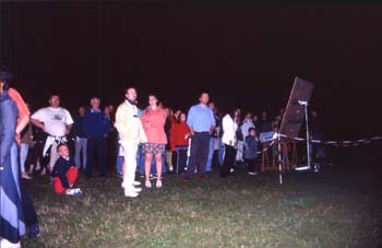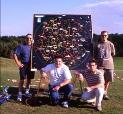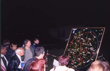 Carte du ciel d'été lumineuse Combien de fois est-on gêné par les lumières blanches que le public prend avec lui ? Afin de ne plus être ennuyé par cette pollution, certains membres du club ont eu l'idée de construire une carte du ciel d'été géante de 1m60 par 1m60, le tout éclairé par de la lumière noire.